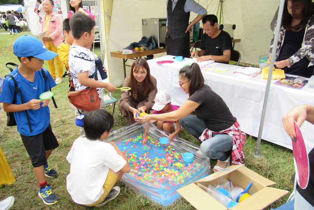 愛知県社交飲食組合の緑支部は、昨年10月26日に大高緑地で開催された「緑区区民まつり」で、組合の広報活動を行いました。メインステージの近くに開設された組合ブースに、近藤正美支部長や支部加盟店の皆さんが集結。ブース前を行き交う来場者に、組合名や加盟店名が印刷されたうちわを手渡すとともに、子ども向けのスーパ ーボールすくいコーナーを用意して家族連れとの交流を図りました。